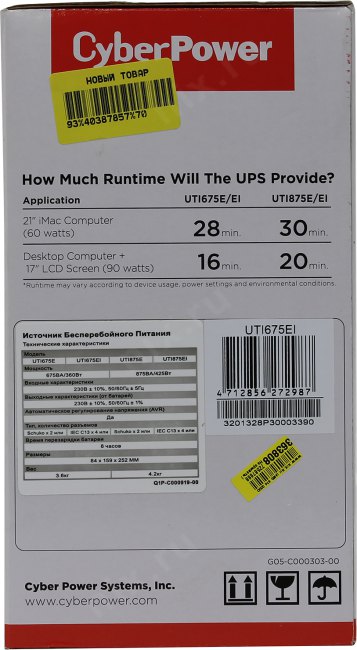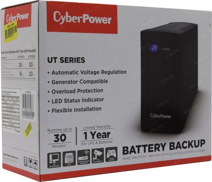батарей при нагрузке 100 Вт: 13 мин.; батарей при нагрузке 200 Вт: 4 мин.; батарей при нагрузке 50 Вт: 28 мин.