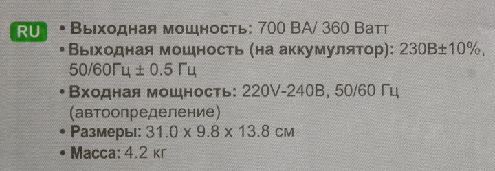 Время работы от аккумуляторов: 1 минута при нагрузке 260 Вт, 5 минут при нагрузке 50% (180 Вт)
