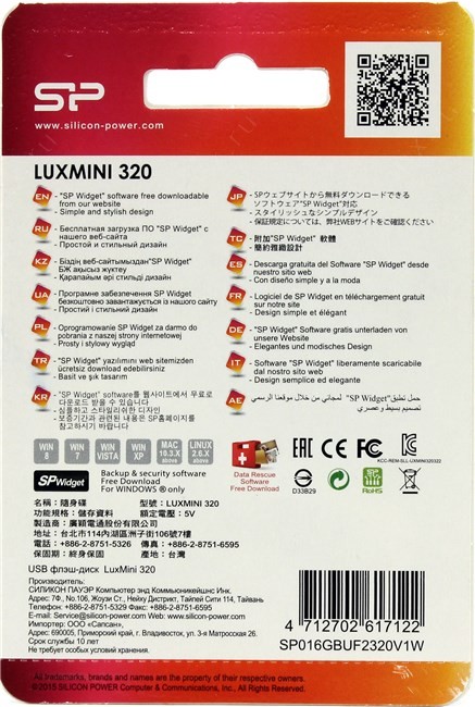 SP Widget (позволяет синхронизировать почту с MS Outlook и Outlook Express, закладки IE; шифровать данные, использовать USB-накопитель как аппаратный ключ для разблокировки компьютера), утилита скачивается с сайта производителя
