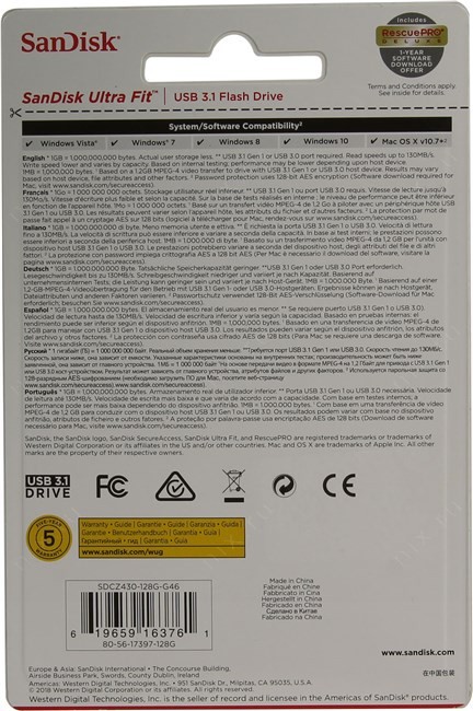 Програма SecureAccess с парольной защитой 128-bit AES шифрованием скачивается с сайта производителя. Подписка на 1 год использования RescuePRO (ПО для восстановления данных скачивается с сайта производителя).