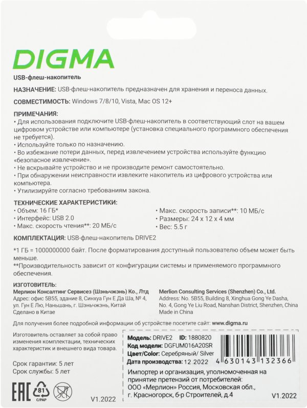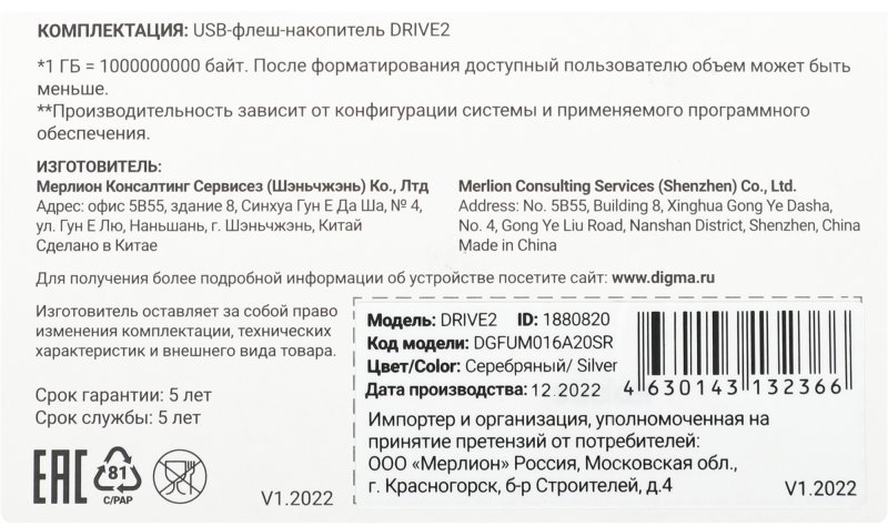 Объем Flash-накопителя