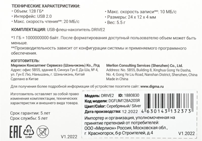 Объем Flash-накопителя