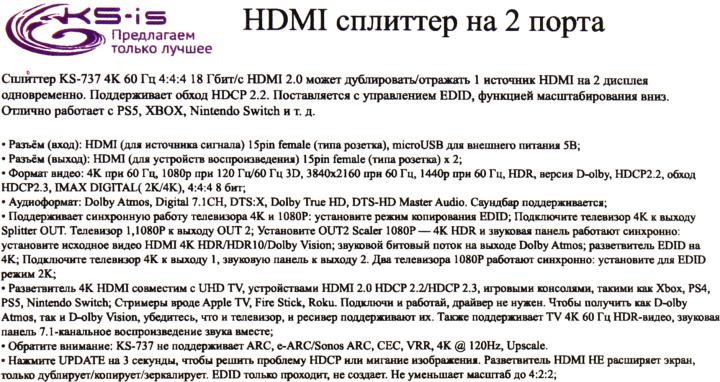 Вход HDMI, 2 выхода HDMI