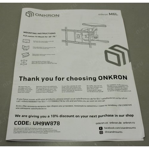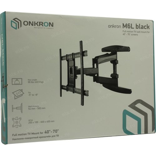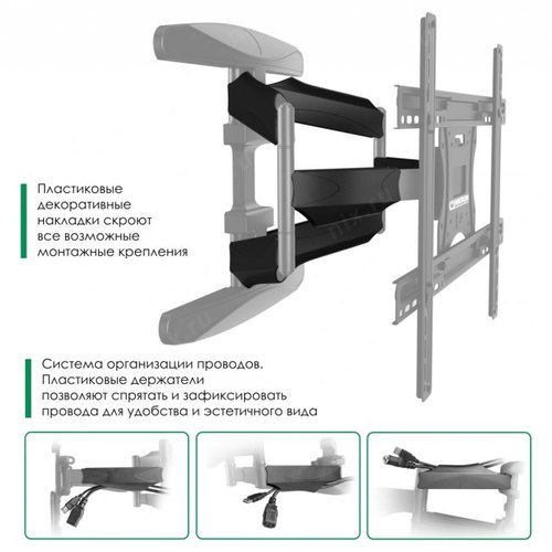 Универсальное крепление. Система двойного плеча. Кабель-канал. Ультратонкий дизайн и большой вылет от стены. Широкие возможности регулировки экрана.