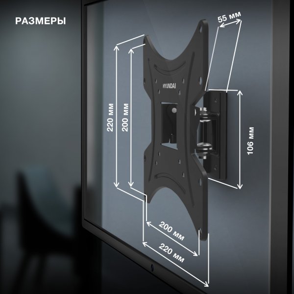 Кронштейн для телевизора Hyundai GL R2 черный 13 48 макс 20кг настенный поворот и наклон