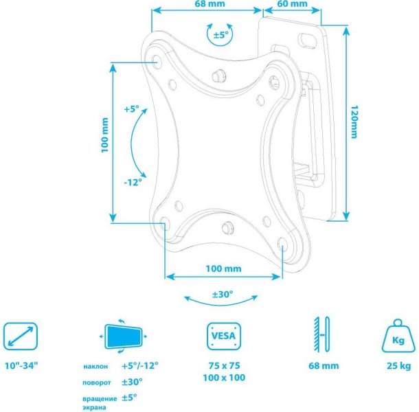 Максимальная нагрузка на кронштейн для крепления телевизора (кг)